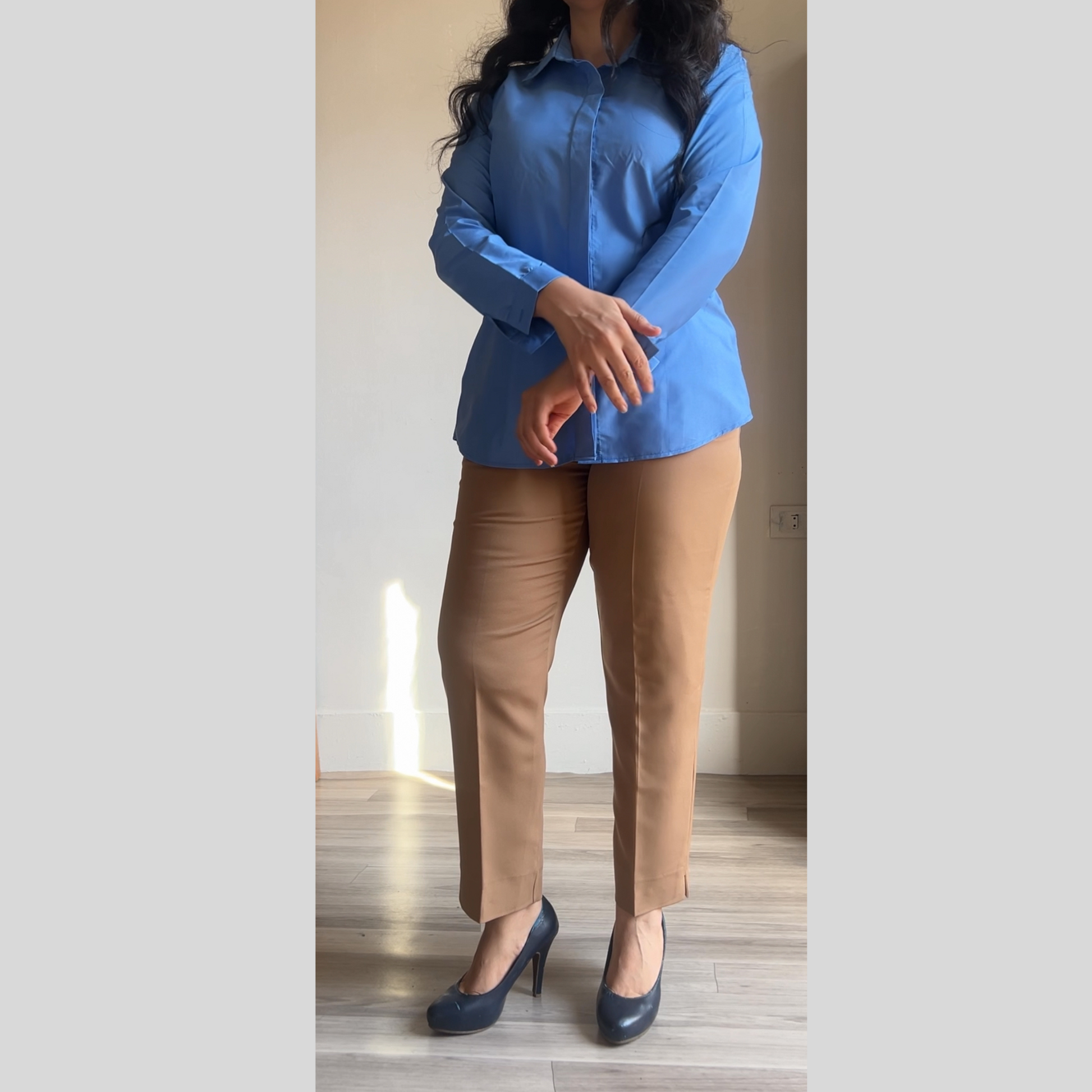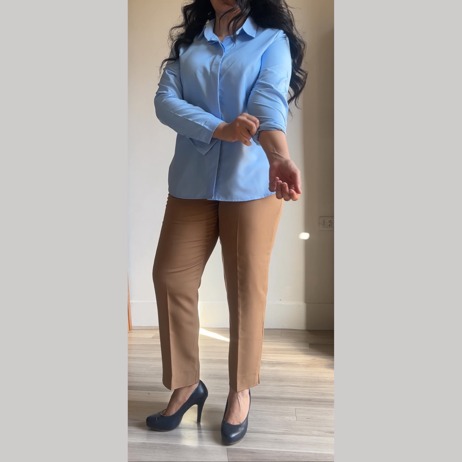 سهل التنظيف وسريع الجفاف، وبيحافظ على شكله وأناقته مهما كان ضغط يومك. شيميز يجمع بين الراحة والعملية لإطلالة عصرية ومرتبة دائماً.”
